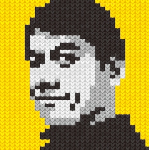 本展では、過去のプライベートワークによる音楽や映画のワンシーン、物語の登場人物、身近な存在や大切な人など、多彩な作品群に加え、ZINE「肖像編み物」「続・肖像編み物」に掲載された個人オーダー作品の一部を展示します。編み物☆堀ノ内によって細かな編み物製図をもとに、家庭用編み機を用いたインターシャという技法で制作された作品は、写真や画像をニットへと置き換えながら、独特の奥行きと存在感を生み出しています。